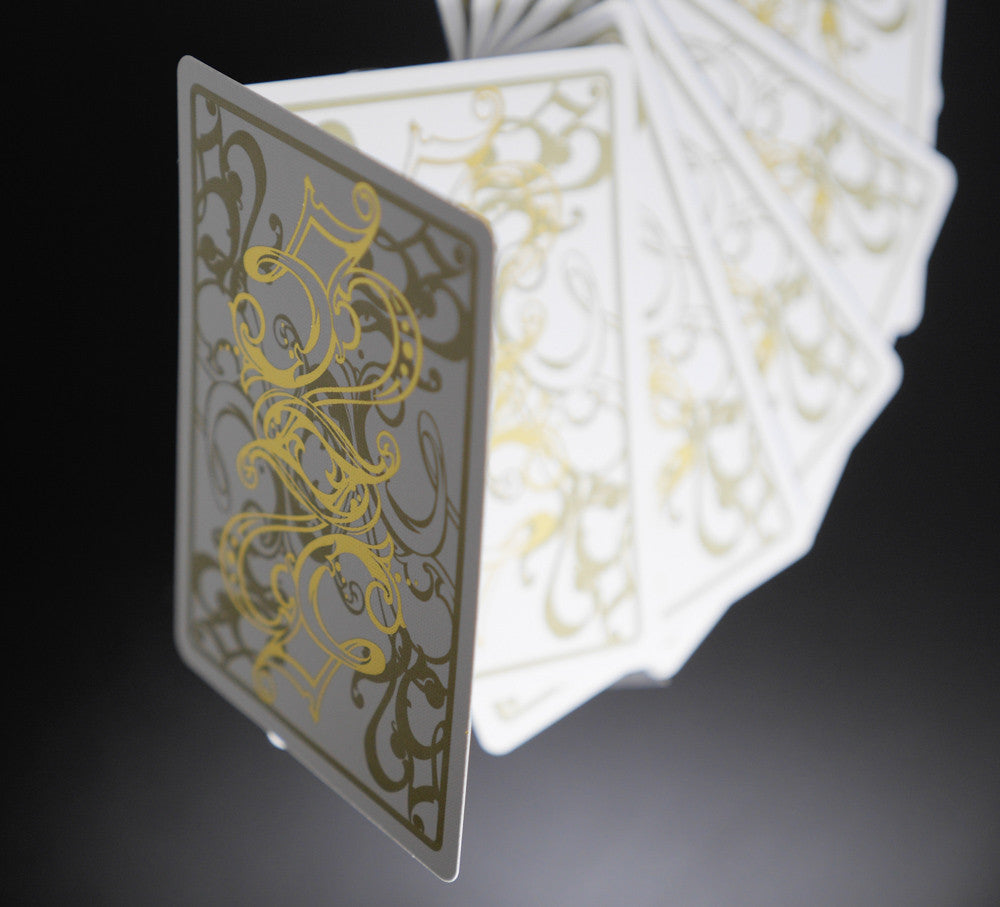 Jackson Robinson's back design is produced with metallic gold ink and stunning gold foil on each card. The gold foil design carries over to the back of the tuck box as well making it truly eye-catching. The deck also features Jackson Robinson's beautiful new Custom Court design!