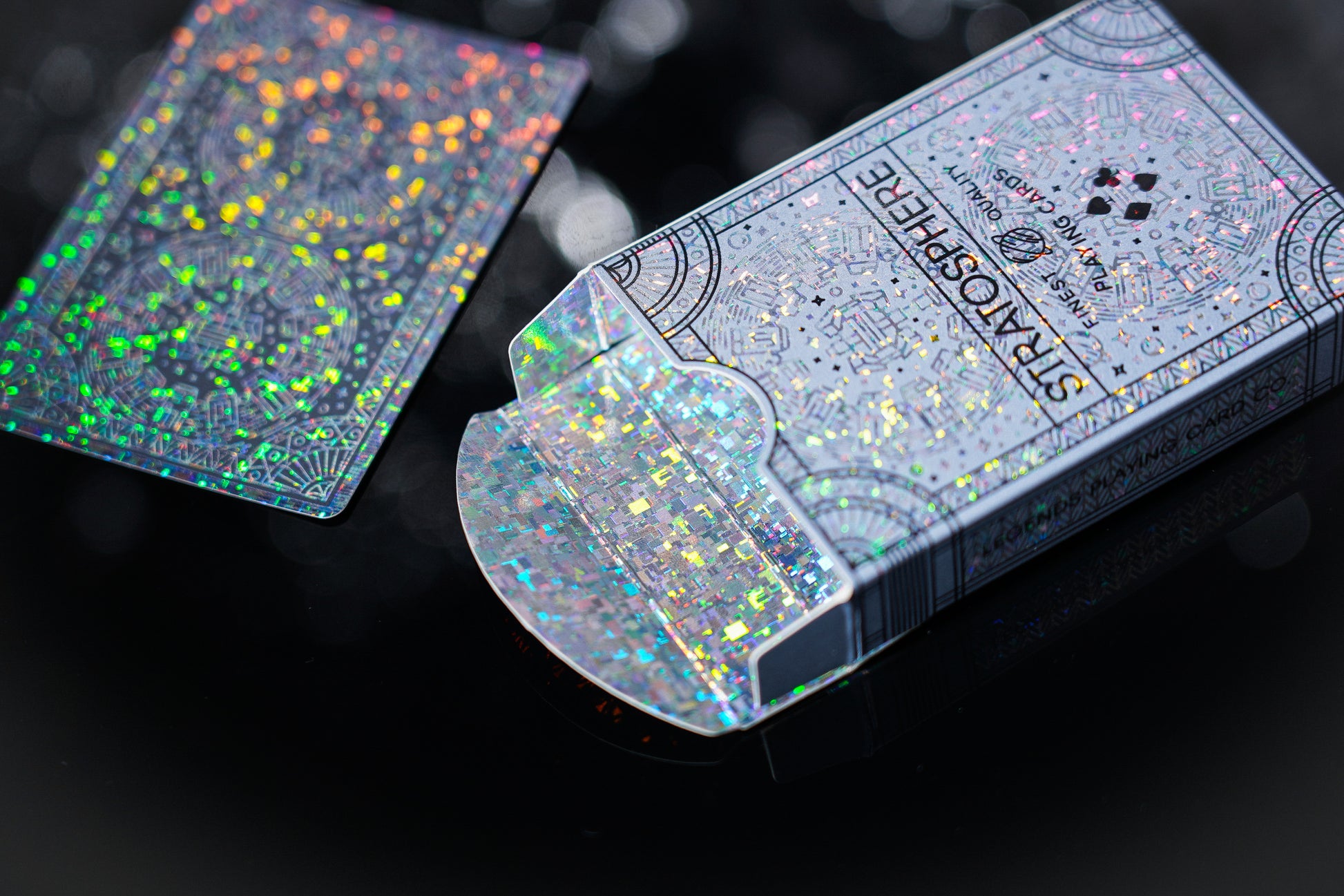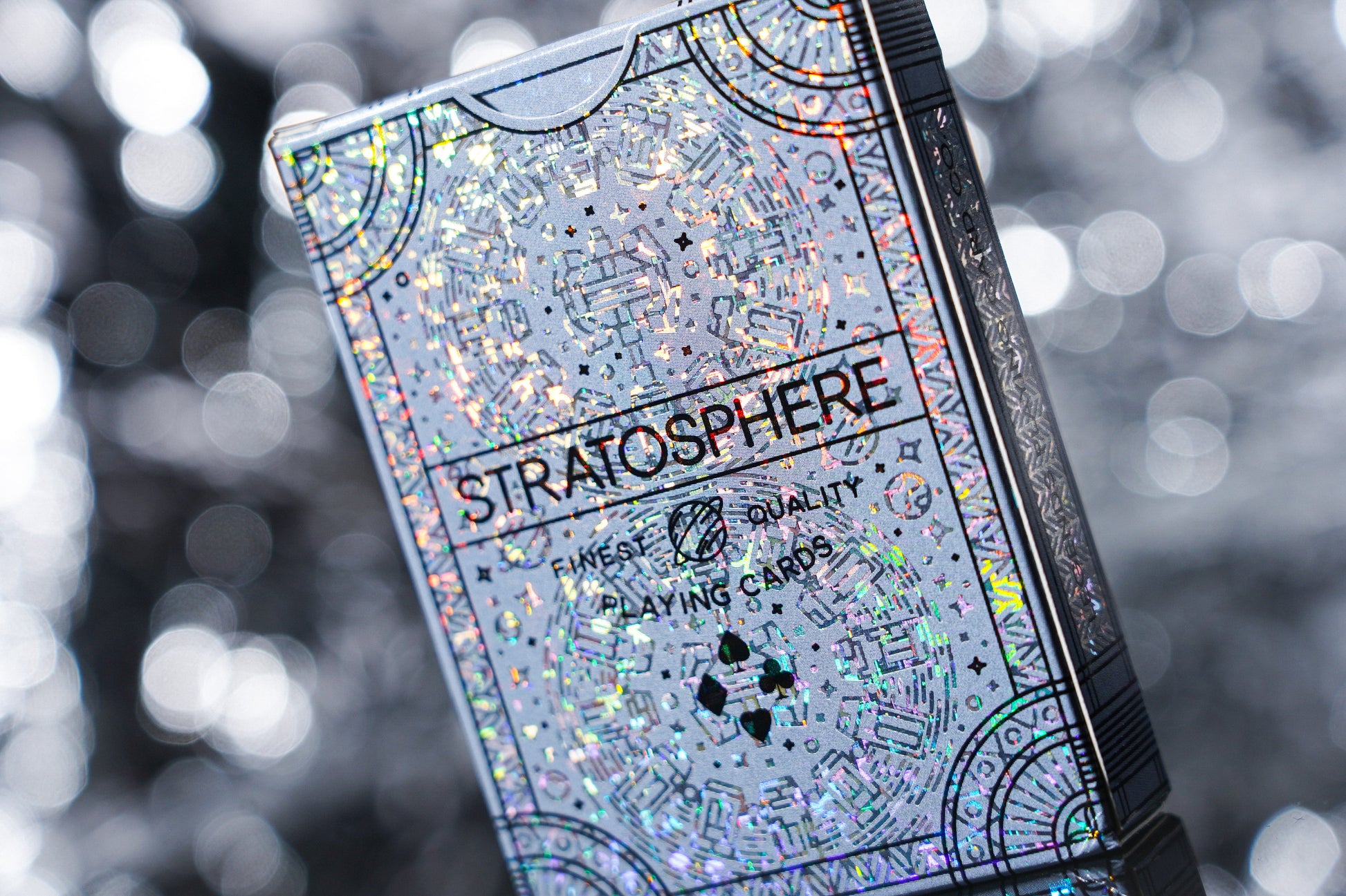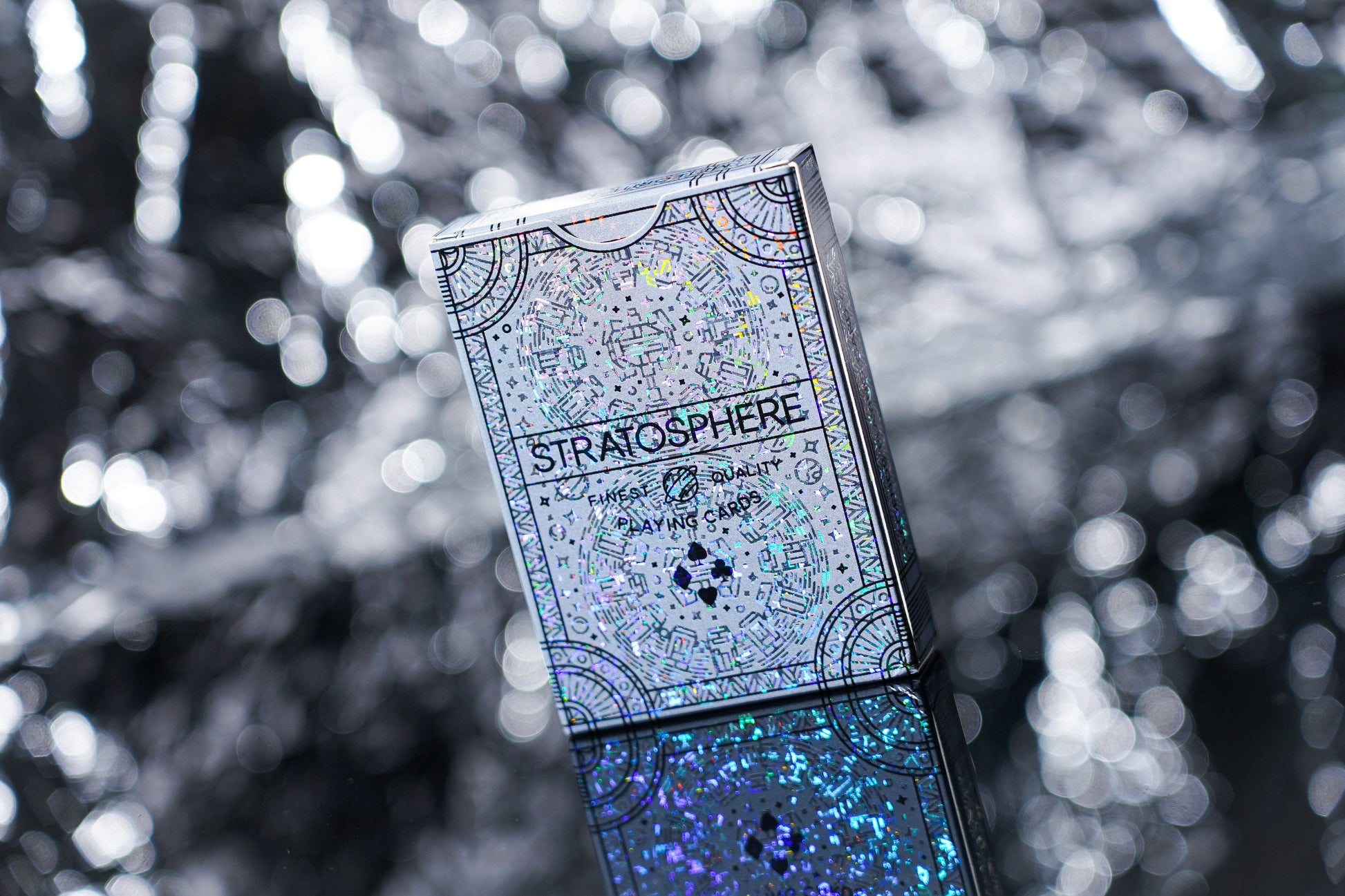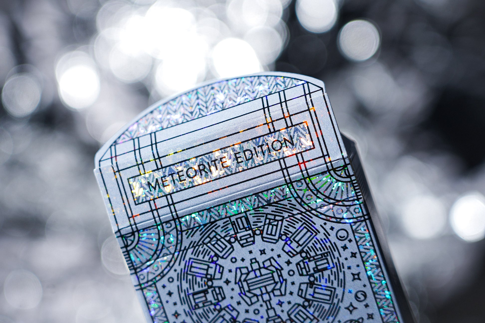 Unlike any other deck on earth, STRATOSPHERE - METEORITE EDITION showcases the future of playing card technology. Like a meteor entering Earth's atmosphere, this deck features an all-new, patterned, holographic full foil that reflects and shimmers from any angle. Discover the cosmic sparkle with your own eyes!